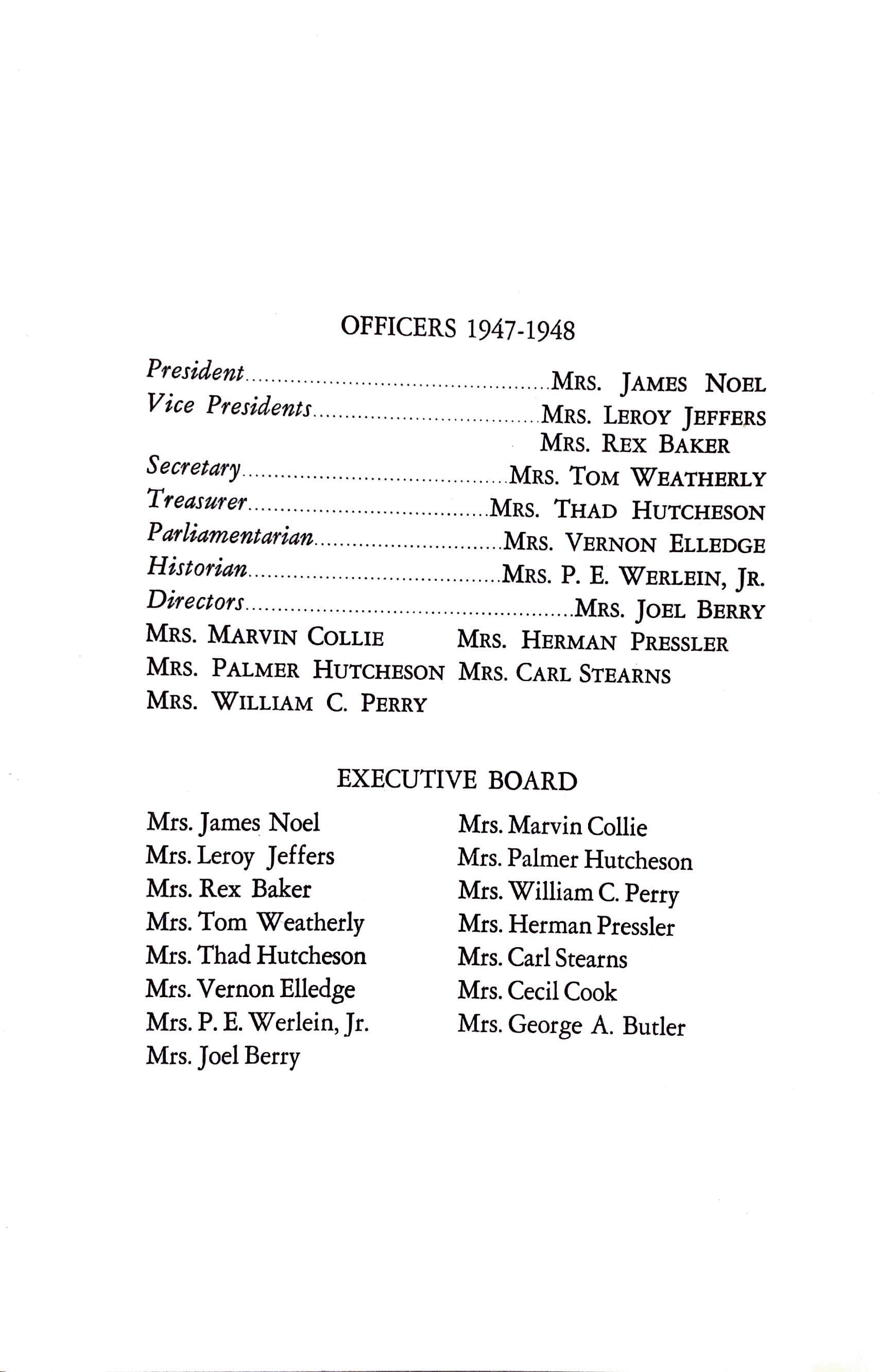 When the first yearbook was published in the Fall for the 1947-48 club year, there were 325 members; they are referred to as the Founding Members. They set about their purpose of support the HBA by planning many social activities.