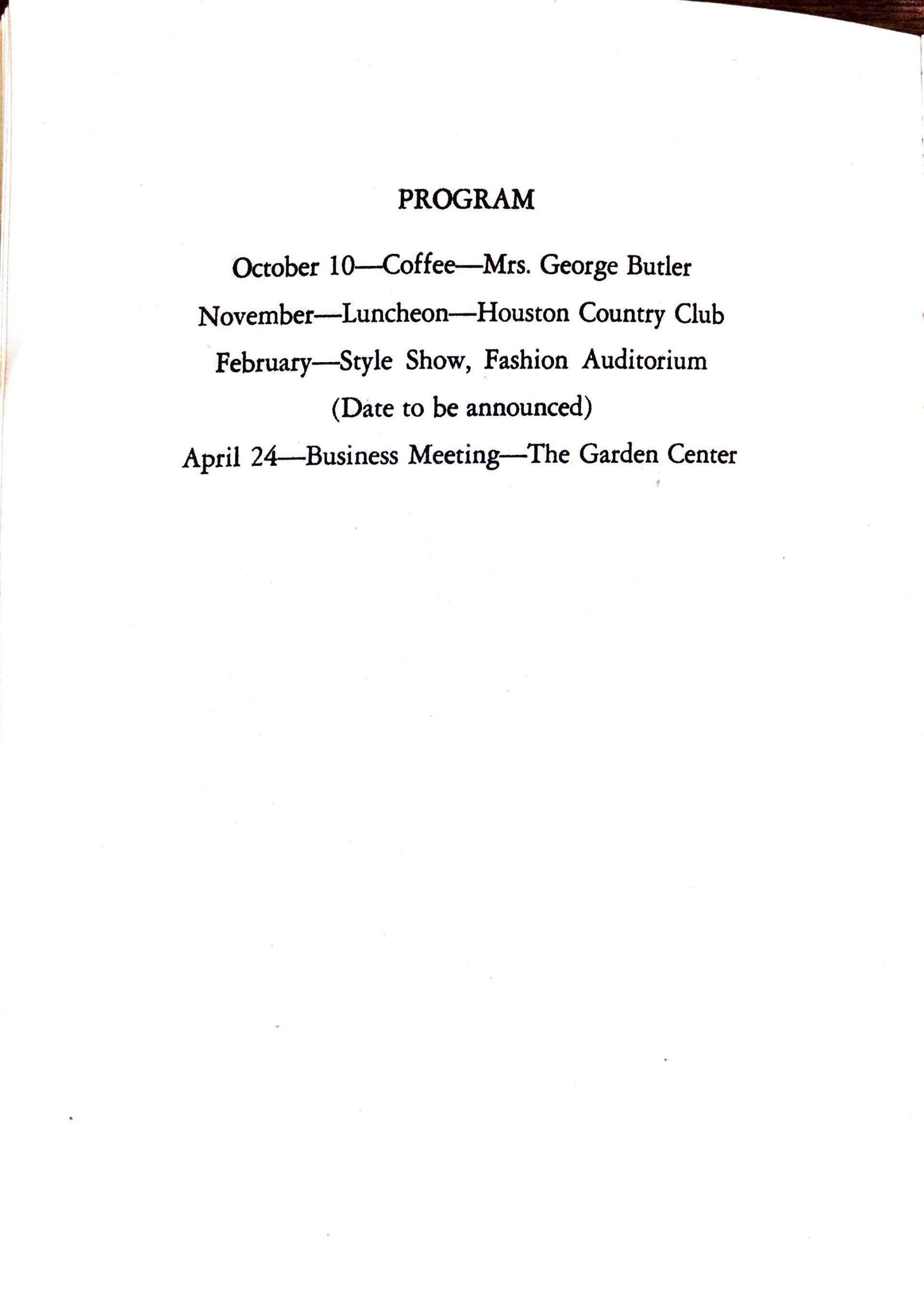 First, they organized four Spouse activities for the 1948 SBOT convention. There were two Sakowitz style show luncheons at the Empire Room of the Rice Hotel. Buses took visitors on a sight-seeing tour of the city, stopping to see several gardens, including those at the Bayou Bend, and wound up at old Houston Country club for refreshments. Plus, the WAHBA designed an innovative registration system so any attending lawyer could be found on the Convention floor, and they planned transportation for all the events.