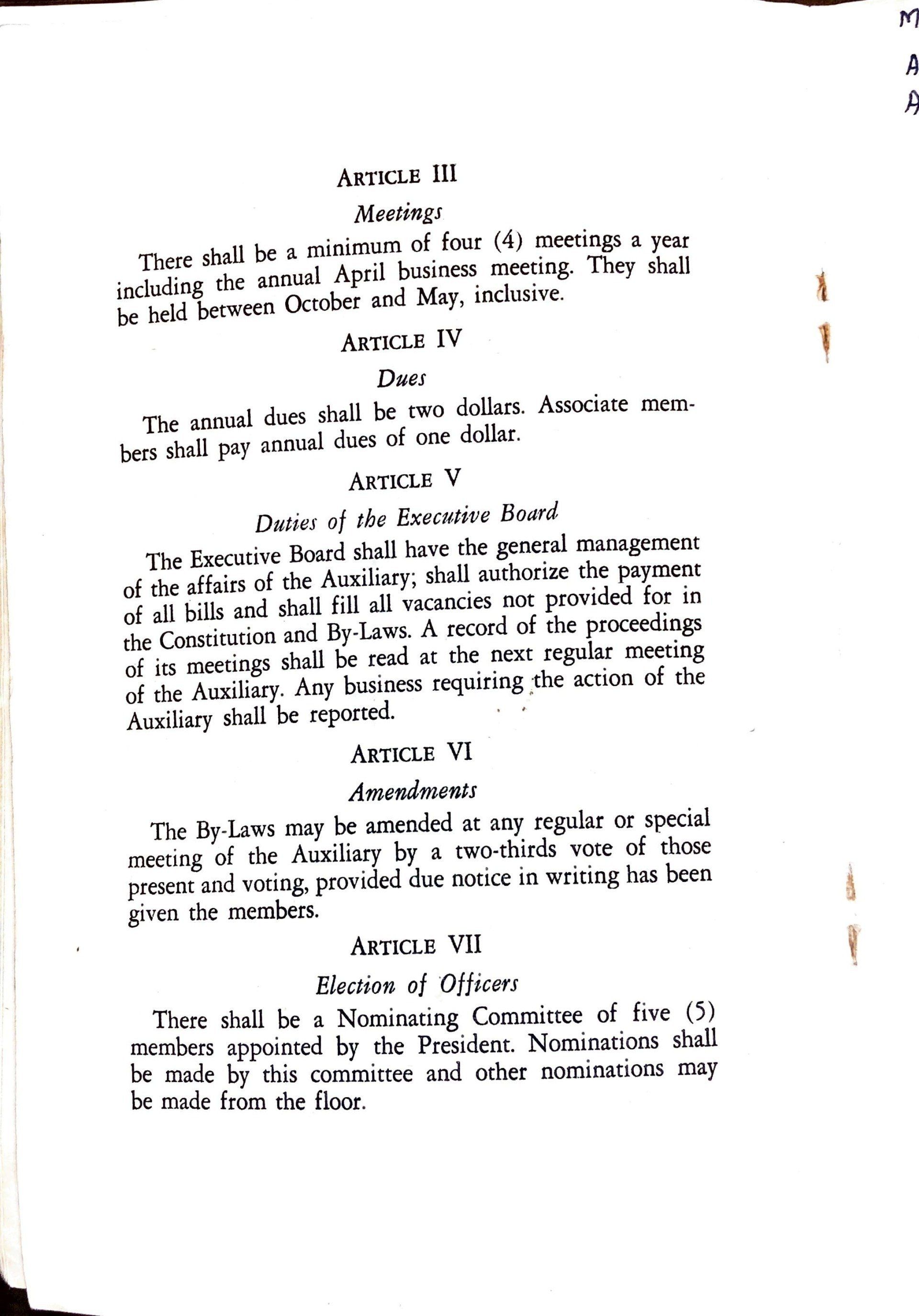 Third, the Auxiliary entertained its own members with a Fall Coffee, a November style show luncheon, plus an Annual Business Meeting and election of officers.